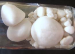 Bladder Stones (pictured on the right) are formed in the bladder when the crystals stick together. Stones may